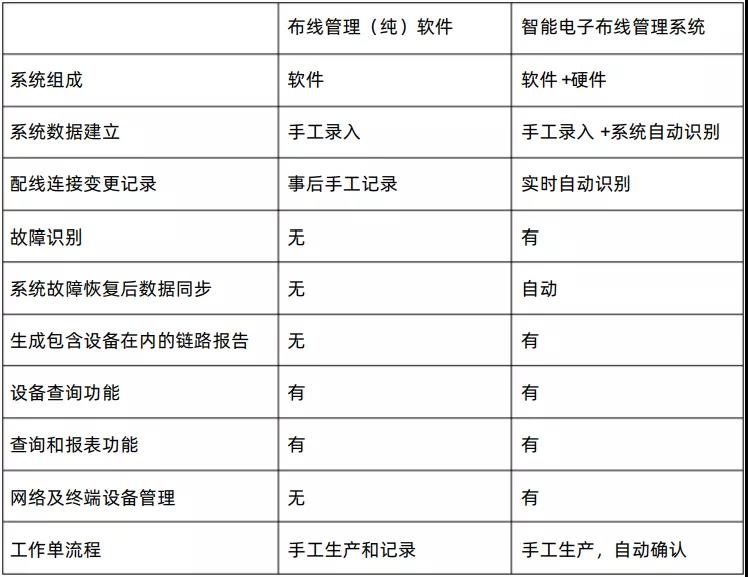 可以采用純軟件線(xiàn)纜管理系統(tǒng)或軟硬件一體化的智能電子線(xiàn)纜管理系統(tǒng)來(lái)實(shí)現(xiàn)線(xiàn)纜系統(tǒng)管理。系統(tǒng)功能要求如表1所示。