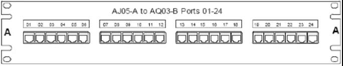 例如,圖4和圖5顯示了24位配線(xiàn)架使用的標(biāo)簽,24根6類(lèi)電纜連接到AJ05到AQ03機(jī)柜(見(jiàn)如圖2)。