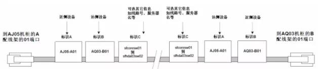例如,連接到圖4.7.4-3所示配線(xiàn)架第一個(gè)位置的線(xiàn)纜可能包含如下標(biāo)簽:AJ05-A01/AQ03-B01。 AQ03 機(jī)柜中的同一根電纜將包含以下標(biāo)簽:AQ03-B01/AJ05-A01。如圖6 如圖。